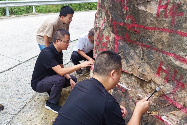 钟智慧一行听取了项目负责人就工作进展、阶段性成果、安全管理等情况的汇报,认真检查了项目原始资料,详细了解了项目质量、人员分工情况,并就项目遇到的重点难点问题提出了指导意见;随后深入实地对工作区新发现的铜矿化点、铀异常点进行了现场指导。钟智慧对项目总体工作进展、阶段性成果给予了充分肯定,他强调,项目组要把好技术质量关、做好时间节点安排,确保项目任务按期圆满完成。