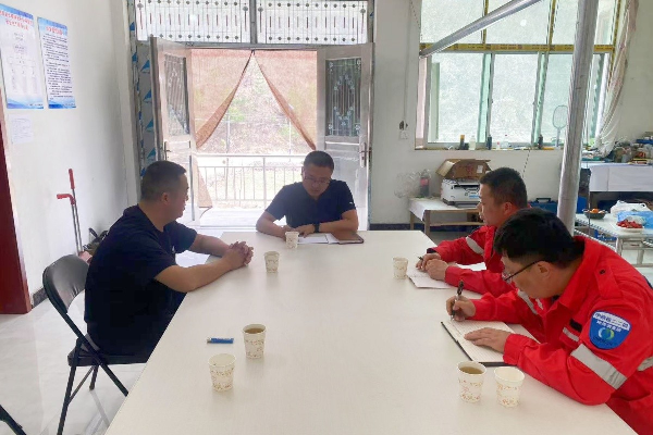 到达项目驻地后,钟智慧一行仔细查看了项目部工作生活设施环境,对驻地建设表示肯定,并着重指出要持续提升后勤保障能力,优化生活配套设施,切实提升项目人员的生活质量和幸福感,为项目高效推进提供坚实保障。随后,项目负责人张勇就项目进展情况作了详细汇报,钟智慧一行认真听取汇报后,对项目现阶段工作成果给予充分肯定,并就项目在施工建设、资源协调、外部对接等方面的困难和急需解决的突出问题,与项目人员进行了深入交流,提出了意见,李鹏就安全生产工作作出部署,要求项目部高度重视野外作业安全,重点防范洪水、滑坡等地质灾害,建立定期安全隐患排查机制,落实预防措施。