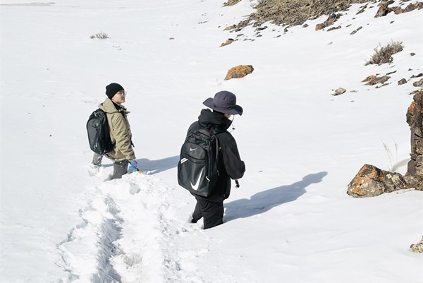 3月9日,矿业权调研项目组率先出发。本次调研横跨克拉玛依、巴音郭楞、吐鲁番等广袤区域,不仅面临地跨千里、交通受限的客观困难,更时值新疆工区厚雪覆盖、寒风料峭。队员们唯有徒步穿行于陡峻沟壑,在没踝的积雪中深一脚浅一脚地艰难跋涉,任凭冰雪灌入鞋中化为冰碴,也始终坚持在一线开展调查,以精湛的专业能力为企业提供可靠、务实的投资决策依据,走好矿业权全生命周期服务的关键一步。
