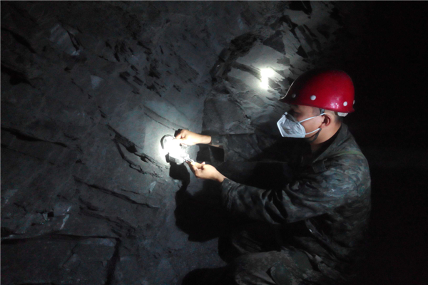 由于板仓沟位于深山沟谷、密林丛中,在这里,没有车水马龙,只有纵横交错的茂密植被和散落遍地的断蓬枯草,正午的烈日烤炙着大地,焦灼发烫的阳光让我们大汗淋漓、汗流浃背,上衣紧贴着前胸后背,但这不仅没能阻止我们取土壤化探样的脚步,还磨练了我们吃苦耐劳的工作意志;开展探槽编录时,有的目标位置离驻地较远且无法通车,我们便徒步几小时穿越丛林、翻过高山,为尽快完成当天工作任务,到达目标位置后我们就立即开展编录工作,晚上回到驻地,再加班共同整理当天工作资料;进行探槽时,我们按照原始记录整理、纸质版绘图、后期检查、描绘电子版图的工作程序严格进行,虽然过程繁琐,但我们始终一丝不苟、认真对待;再来谈谈坑道编录工作,当坑道工程完成一阶段工作后,项目人员需对坑道进行地质编录,坑道空气含有大量粉尘必须佩戴口罩,一般下坑作业时间为两个小时以上,如遇特殊地质环境情况,作业时间将会延长....在这样复杂的作业环境里,我们挥汗如雨、忍暑耐寒,以实际行动诠释着核地质人的“三光荣”、“三特别”精神,艰苦奋斗在第一线,不断克服各种困难,争取早日取得良好的找矿成果。