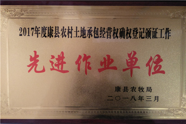 近日,康县农牧局对2017年度在康县农村土地经营权确权登记颁证工作中表现突出、考核优秀的单位及个人进行了表彰通报。中陕核测绘院有限公司荣获“先进作业单位”荣誉称号;郭欢等21名同志荣获“先进个人”荣誉称号。