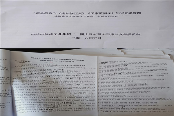 为进一步贯彻落实党的十九大精神和全国“两会”精神,切实把思想和行动统一到公司整体要求和部署上来,地调院党支部精心组织,广泛宣传,于5月15日开展党支部“两会”主题党日知识答题活动。全体党员、入党积极分子参加了此次活动。