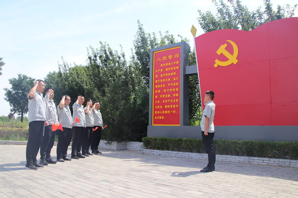 在潼关县党史学习教育主题公园,支部全体党员整齐队列,在公司总经理助理、钼业公司党支部书记、总经理王强的带领下,庄严地重温入党誓词;认真参观了党史学习教育主题公园各党史布设内容。
