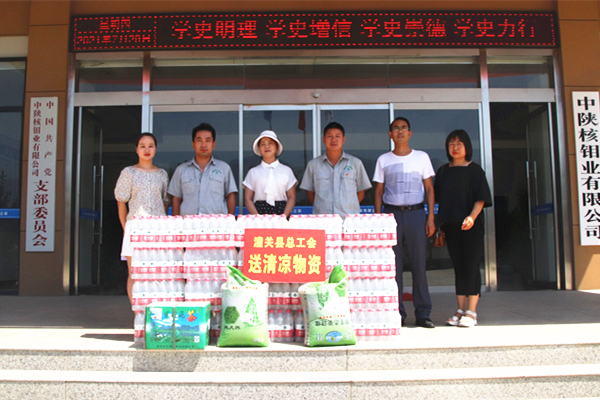 盛夏酷暑、烈日炎炎。7月30日,潼关县总工会常务副主席师婧、副主席刘军、经法部部长王江荣一行,到中陕核钼业有限公司开展关爱职工夏送清凉活动。公司总经理助理、钼业公司党支部书记、总经理王强等陪同慰问。