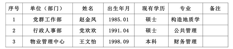 公示期为3个工作日,如有不同意见,请与公司纪检部、行政人事部联系。