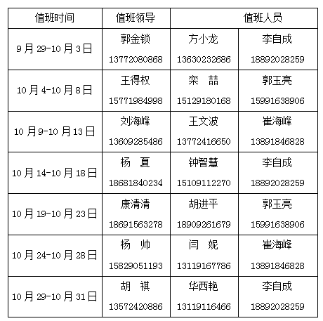 3.值班人员值班期间手机24小时开通。